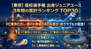 - 東京・神奈川勢(FC多摩、シュートJY)は千葉(流経)や新潟(帝京長岡)、福島(尚志)へ。ランキング上位のチームほど、進路先が特定の高校に留まらず、全国各地の強豪校へ散らばっているのが特徴です。「強いチームには、全国からオファーが来る」という好循環が生まれています。