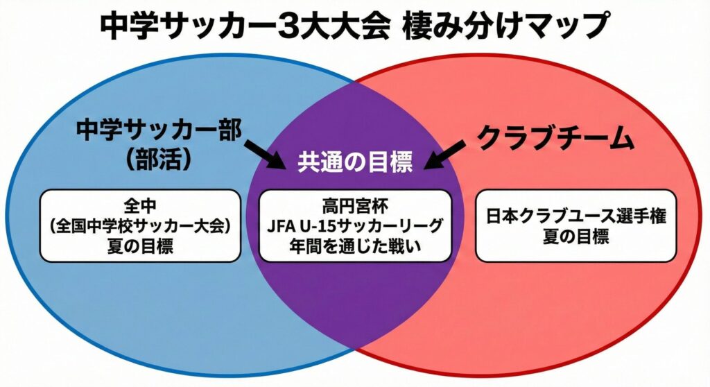 つまり、「全中に出たいなら部活」「クラブユース選手権に出たいならクラブ」という選び方になります。
