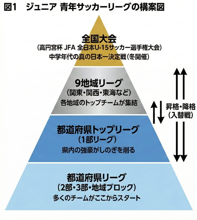 • 関東リーグ(1部・2部):中学年代の”メジャーリーグ”。世代別日本代表候補がひしめく。