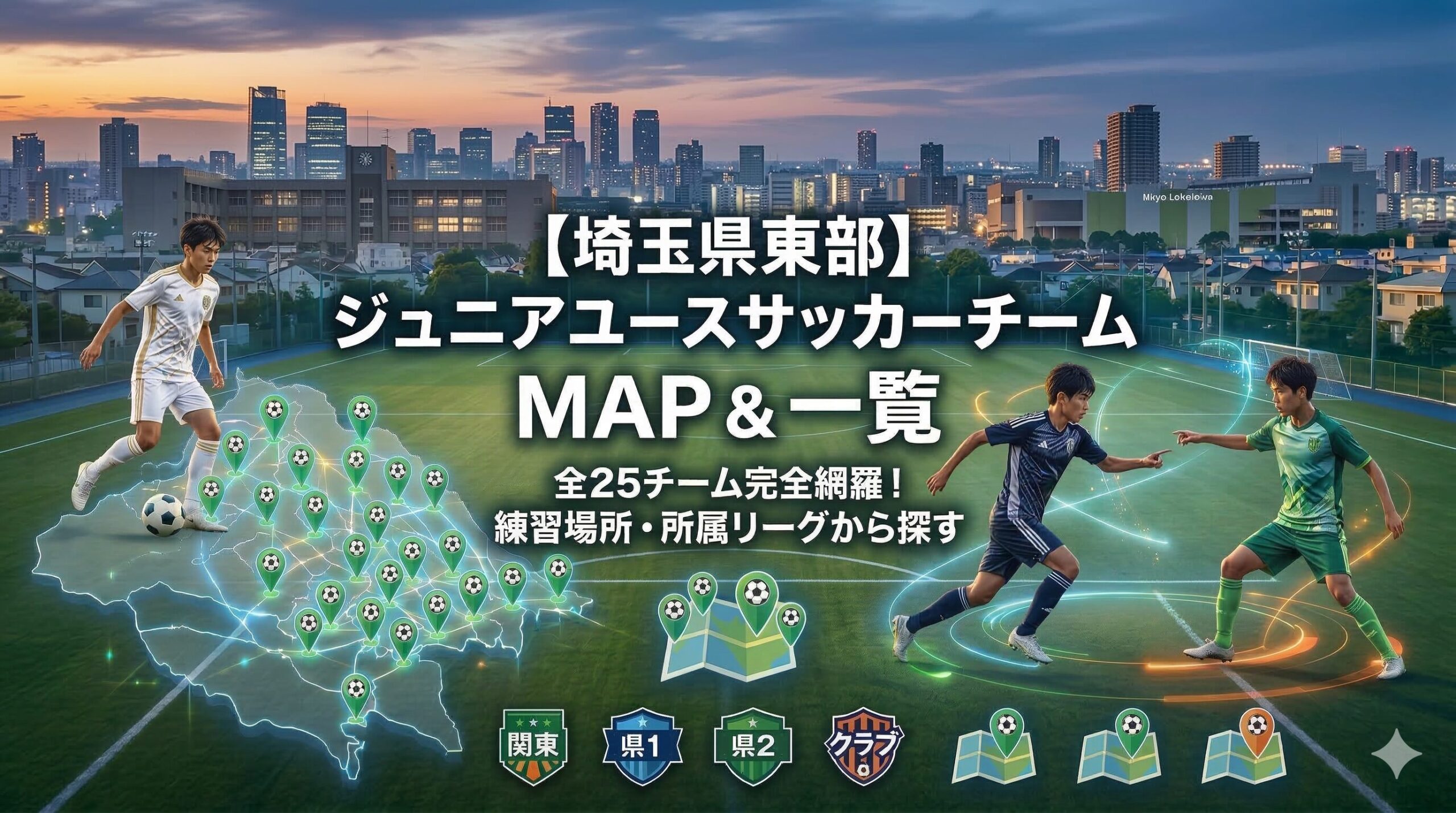 【埼玉東部エリア】埼玉県ジュニアユース(U-15)チーム一覧&活動場所マップ~越谷市・春日部市・三郷市・草加市・久喜市など~