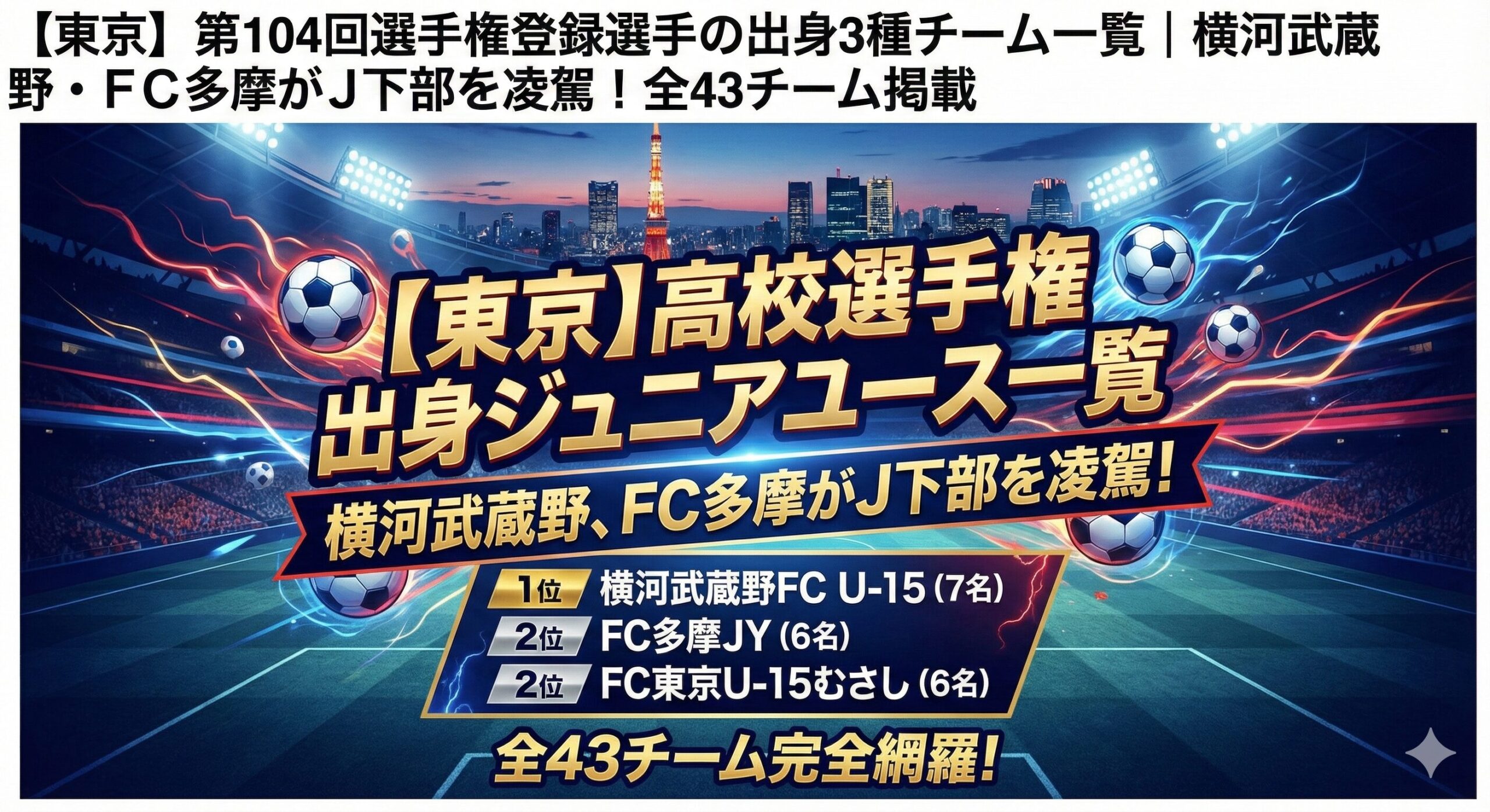 今年も「東京出身」の選手たちが、全国各地の強豪校で主力として活躍しています。当サイトでは、今大会の登録メンバー全選手を対象に、出身ジュニアユース(第3種)チームを独自調査しました。