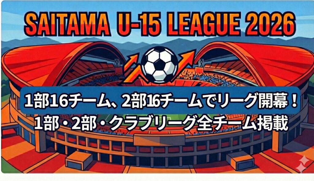 【2026年度】埼玉U-15リーグ再編!1部・2部16チーム制へ拡大で変わる勢力図と全クラブ一覧