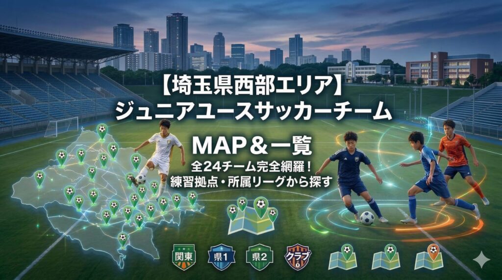 【埼玉西部エリア】埼玉県ジュニアユース(U-15)チーム一覧&活動場所マップ~川越市・所沢市・狭山市・入間市・坂戸市・東松山市など~