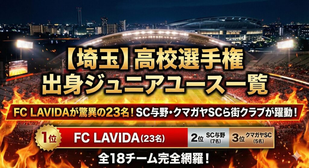 【埼玉】高校選手権出場選手の出身3種チームランキングTOP30|FC LAVIDAが驚異の45名!クマガヤ・与野ら街クラブ王国